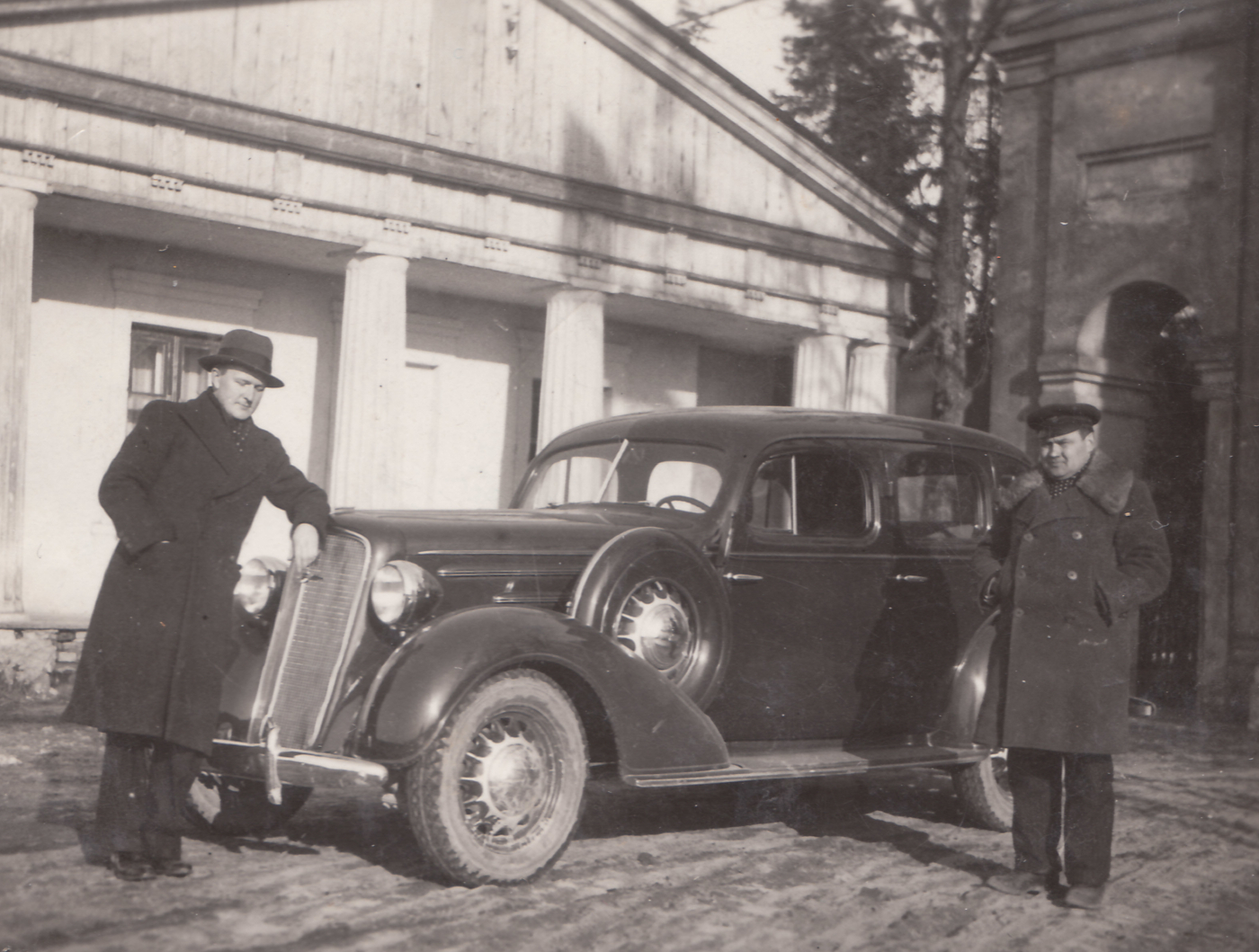 Johannes Paasi (paremal) CHEVROLET (B-173) Tartus Raadi mõisa väravas. Foto: Johannes Paasi album Valeri Kirsi kogust. |