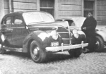 FORD V8 (mod. 1936) Tartus 1939. aastal. Auto ees seisab Eduard Laas ehk "Edy" kindlustusseltsi "Oma" Tartu osakonnast.