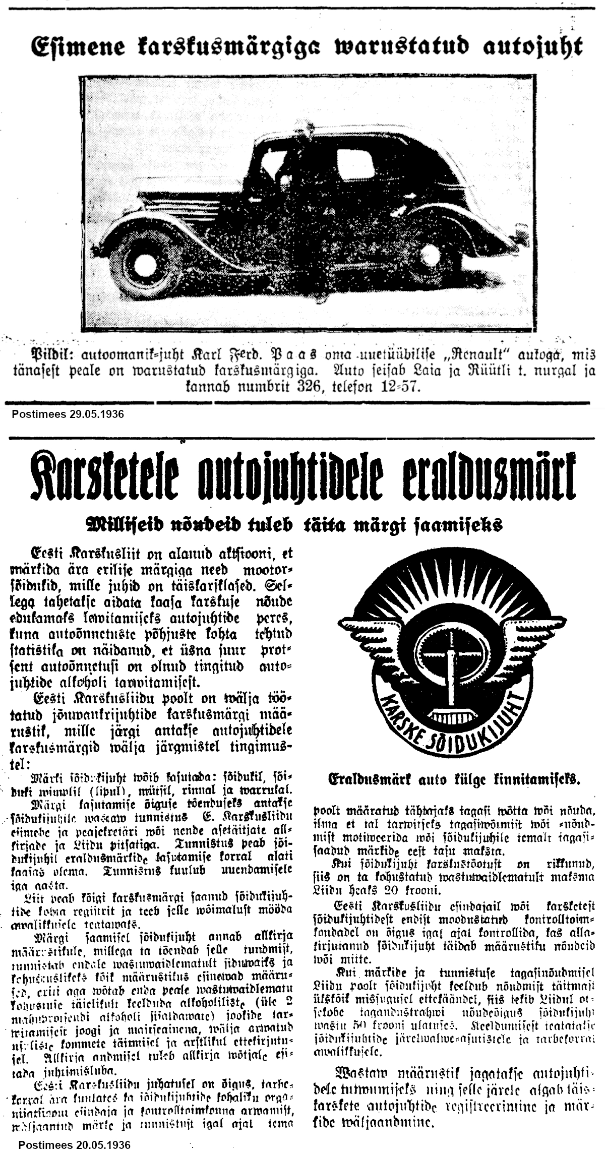 Rahvaleht 01.07.1936). Foto: Mobilisti 7/1998. |