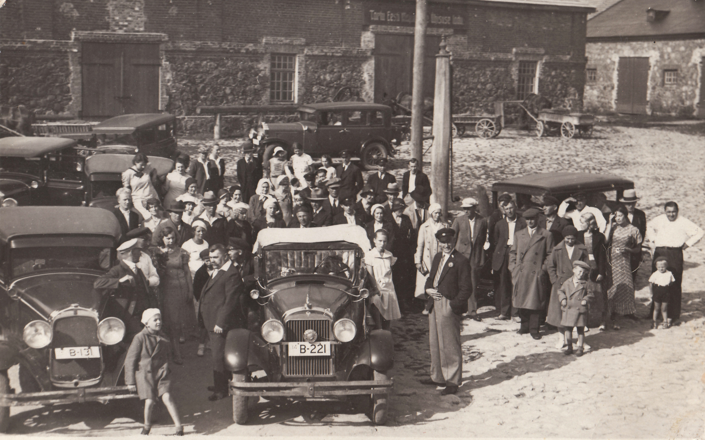 Autod Tartus Kaubahoovi ees 1920. a-te lõpus. Foto: erakogu. |