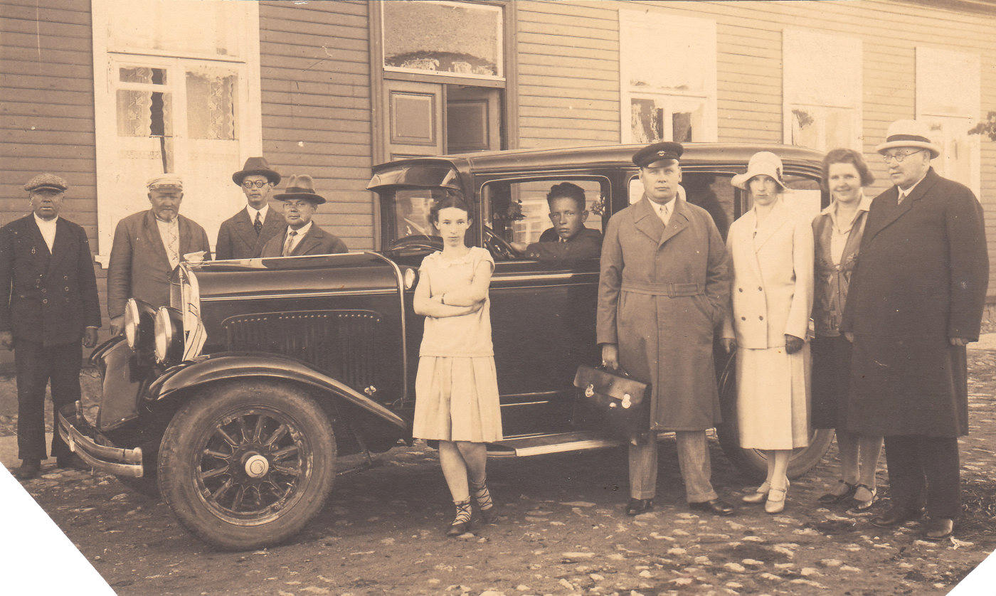 Kontradmiral Johan Pitka peale Kanadast naasmist külastamas kodukanti Jalgsemal. Tallinna takso CHRYSLER