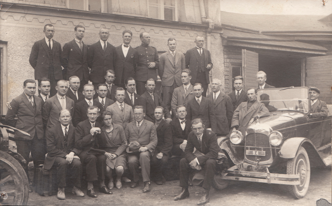 Autokursused Tartu Tööstuskooli juures 24.10.1927 - 15.01.1928. Vasakul ilmselt Tartu Tööstuskooli CITROEN