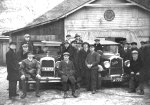 FORD T ja CHEVROLET 1920. a-tel Viljandis Serbia (praegu Vase) 4 õues. Keskel seisab Joann (Jaan) Marjak, redelil Ekaterina