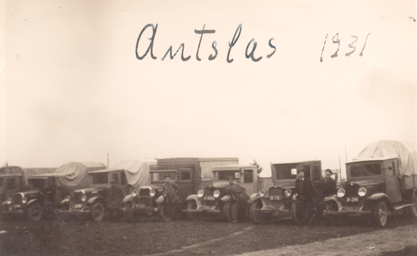 Veoautod 1931. a-l Antslas, tõenäoliselt laadal. Paremalt: kolm CHEVROLET'd (B-291, R. Otti B-76, A-1426), kaks FEDERALi