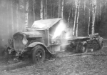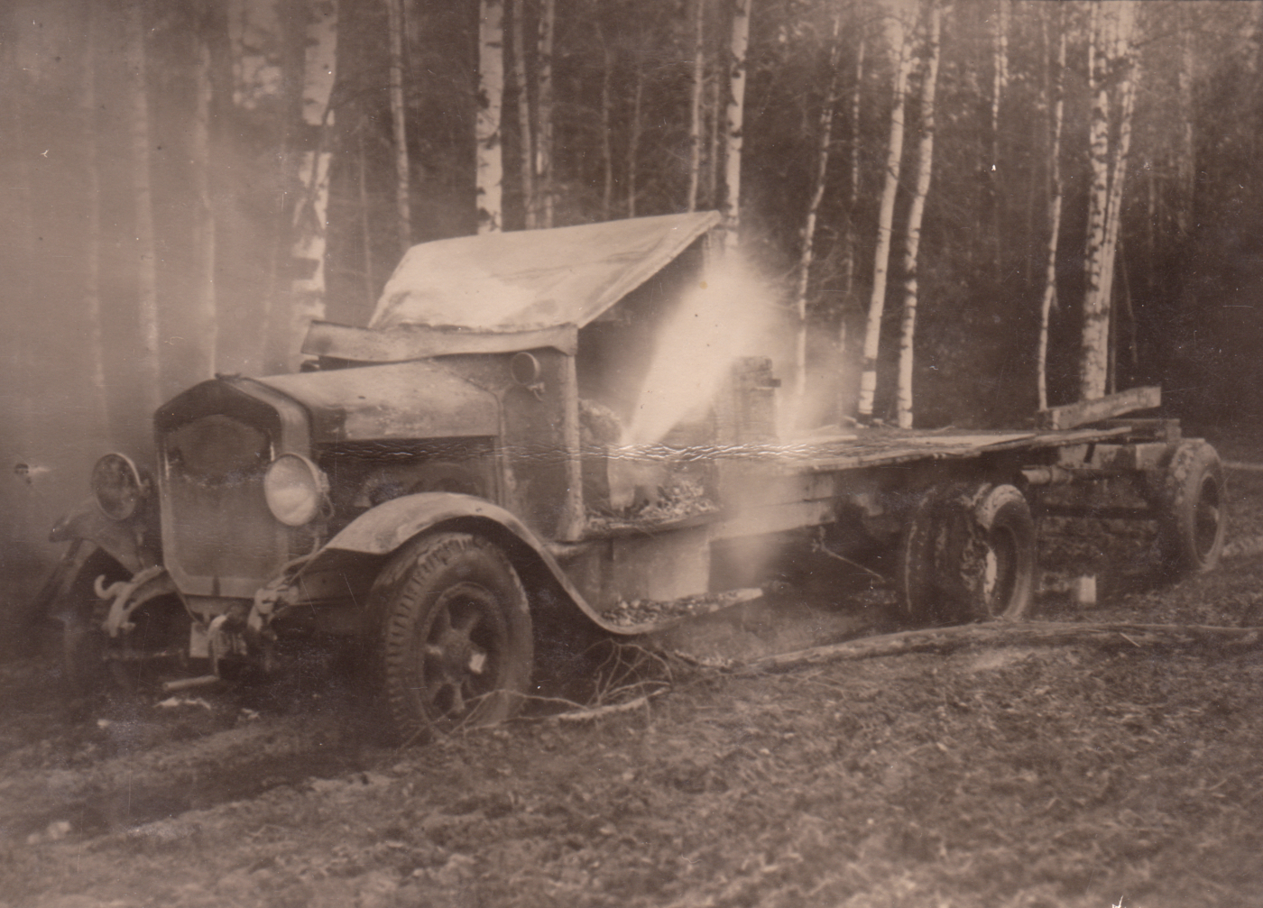 E. Prikkeli HANSA-LLOYD (T-132) pärast 16. okt. 1935 põlengut Vastse-Kuuste lähedal. Foto: klubi Levatek arhiiv. |