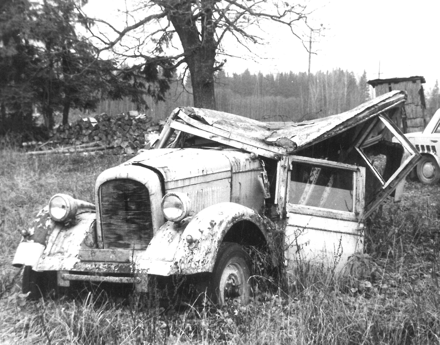 CHEVROLET (u 1935?) Pärast avariid Võru-Põlva maanteel 1991. aastal.